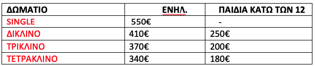 ΑΚΕΡΑΙΟ ΜΕ 30% ΕΚΠΤΩΣΗ (για group min 23 ατόμων): 74€