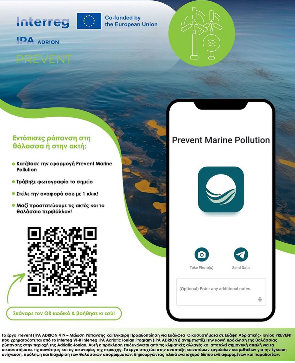 Η Αναπτυξιακή Εταιρεία Περιφέρειας Νοτίου Αιγαίου – ΕΝΕΡΓΕΙΑΚΗ Α.Ε. συμμετέχει ως εταίρος στο έργο Interreg IPA ADRION Prevent, το οποίο έχει ως στόχο την πρόληψη και αντιμετώπιση της θαλάσσιας ρύπανσης.