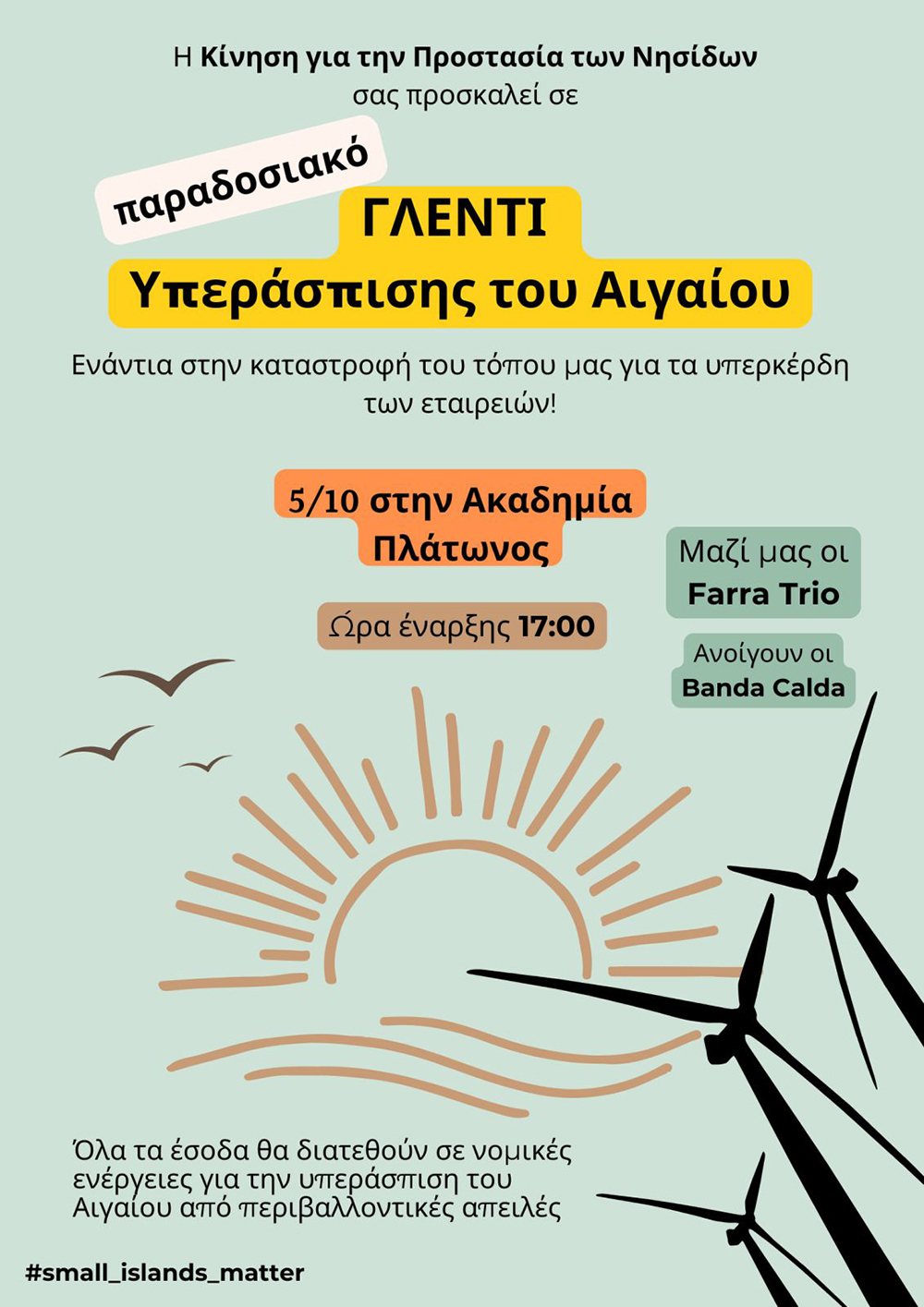 Ελάτε να στηρίξουμε μαζί τον αγώνα για το Αιγαίο, να γιορτάσουμε με μουσική, χορό και συλλογικότητα!