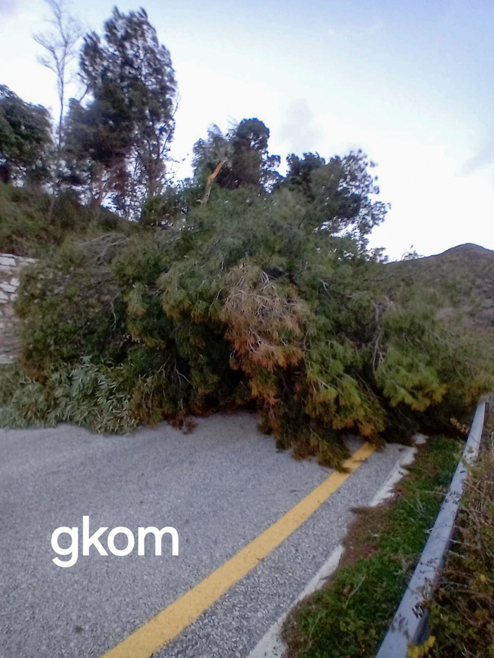 «Διακοπή της κυκλοφορίας Κωμιακής – Απόλλωνα, ύστερα από την πτώση πεύκου στο γήπεδο του μπάσκετ δίπλα στο κοιμητήριο του Αγίου Γεωργίου…