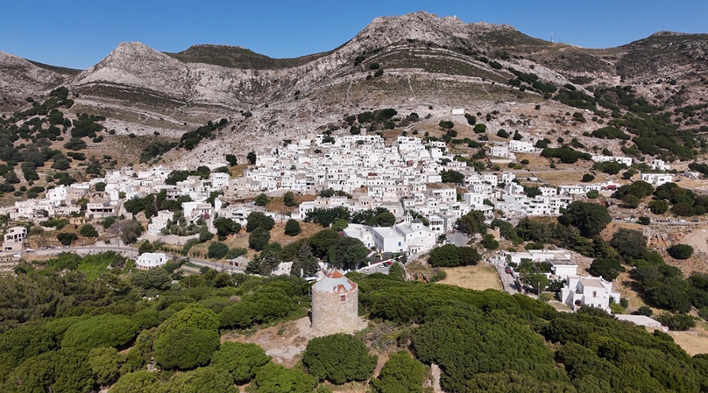 «Τ’ Απεράθου», όπως ονομάζουν οι ντόπιοι το χωριό τους με το διακριτό γλωσσικό ιδίωμα, δεσπόζει στο όρος Φανάρι. Σεβαστό του τέκνο ο Μανώλης Γλέζος, χάρις στον οποίον δημιουργήθηκε -στη μνήμη του αδελφού του- η μεγαλύτερη Δημοτική Βιβλιοθήκη των Κυκλάδων. Στενά δρομάκια και στεγαστά προβάλλουν στον περίπατό μας, σε ένα χωριό που αποπνέει πολιτισμό.