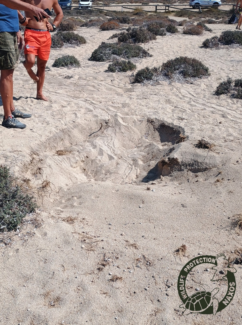 Μέλη του Συλλόγου έσπευσαν στο σημείο, όπου διαπίστωσαν τα χαρακτηριστικά ίχνη από την πορεία της χελώνας στην άμμο και το σημείο που έσκαψε για να δημιουργήσει τη φωλιά της. Πρόκειται για τη δεύτερη φωλιά θαλάσσιας χελώνας που εντοπίζεται φέτος στη Νάξο, μετά την πρώτη που είχε βρεθεί στις 12 Ιουλίου στον Απόλλωνα.