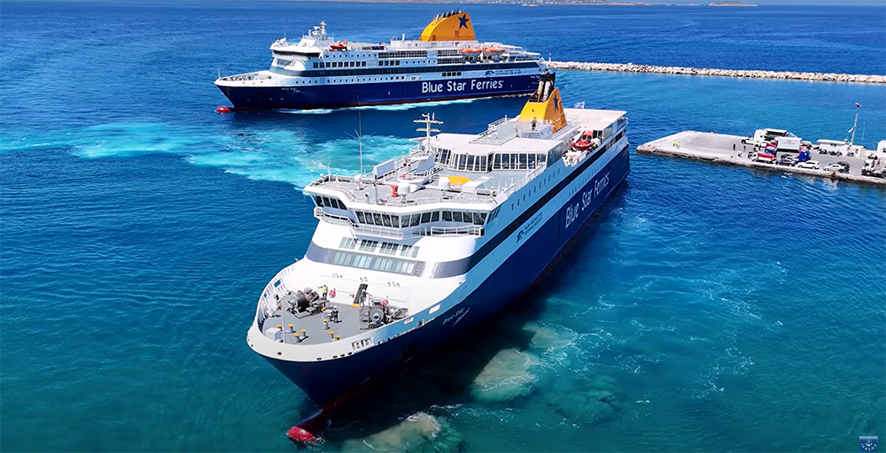 Μια εντυπωσιακή εικόνα αντίκρισαν χθες όσοι βρέθηκαν στο λιμάνι της Νάξου, καθώς τα πλοία Blue Star Naxos και Blue Star Delos κατέφθασαν ταυτόχρονα από την Πάρο.