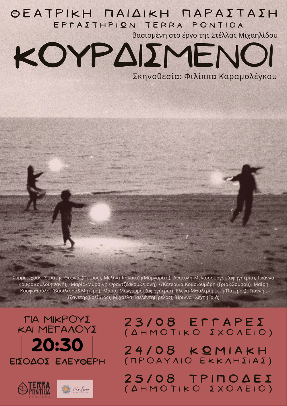 Τα θεατρικά εργαστήρια των παιδιών και των ενηλίκων της Terra Pontica που πραγματοποιήθηκαν τον χειμώνα, παρουσιάζουν σε ανοιχτή πρόβα, όπως μας αρέσει να λέμε, την παράσταση βασισμένη στο έργο της Μιχαηλίδου ΚΟΥΡΔΙΣΜΕΝΟΙ.