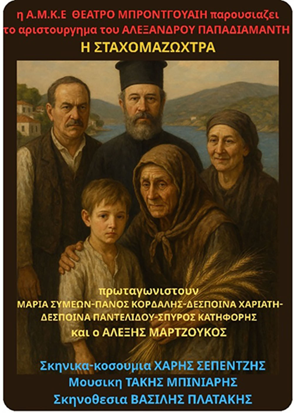 Ο Δήμος Νάξου και Μικρών Κυκλάδων σας προσκαλεί στη θεατρική παράσταση «Η Σταχομαζώχτρα», την Τετάρτη 3 Σεπτεμβρίου, στις 20:30, στο Αθλοθέατρο Φιλωτίου.