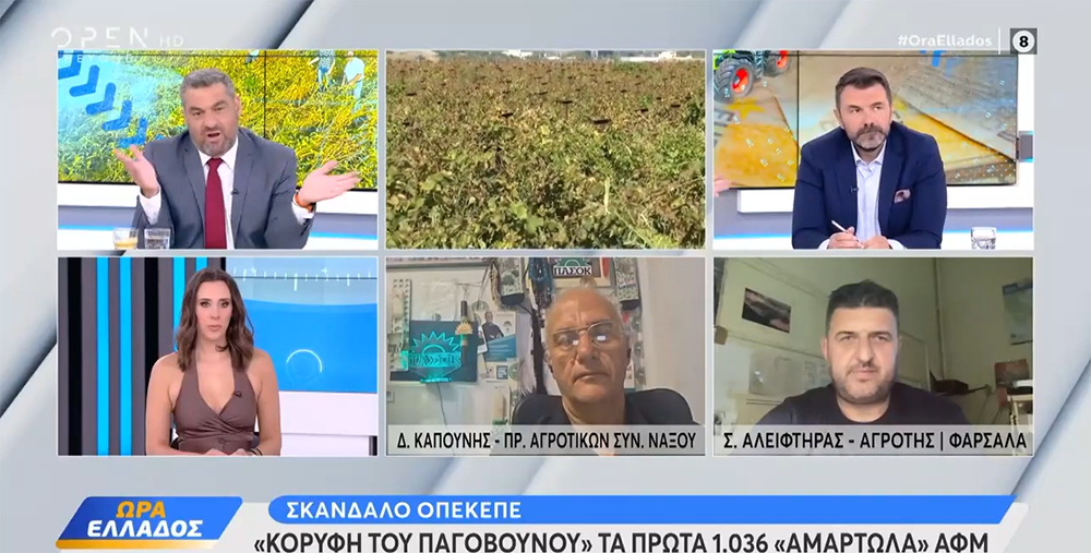 Τη στιγμή εκείνη, ο αγρότης από τα Φάρσαλα, Σωκράτης Αλειφτήρας, που επίσης βρισκόταν στον «αέρα» της εκπομπής, πρόσθεσε: «Είναι… μικρά ψάρια οι 1.036. Οι… μεγαλοκαρχαρίες είναι στο απυρόβλητο ακόμα, διότι συνδέονται με κάποιον τρόπο με το επιτελικό κράτος και με βουλευτικά και υπουργικά γραφεία».