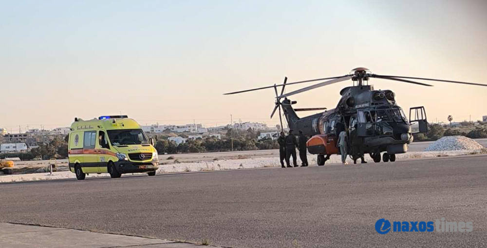 Ο 63χρονος, Ναξιώτης και κάτοικος του νησιού, μεταφέρεται με ελικόπτερο στο αεροδρόμιο και από εκεί με ασθενοφόρο του ΕΚΑΒ στο Γενικό Νοσοκομείο – Κέντρο Υγείας Νάξου.