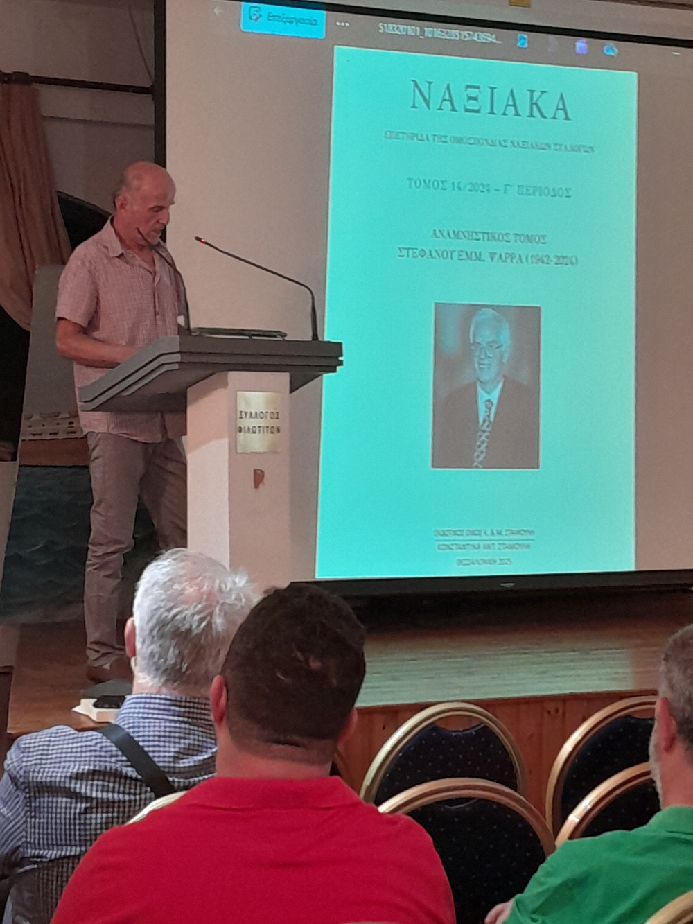 Με επιτυχία πραγματοποιήθηκε η παρουσίαση του 14ου τόμου της επετηρίδας ΝΑΞΙΑΚΑ, που εκδίδει η Ομοσπονδία Ναξιακών Συλλόγων (Ο.ΝΑ.Σ.). Η εκδήλωση έγινε την Πέμπτη 28 Αυγούστου 2025 στο Φιλώτι, στη Νάξο. Ο 14ος τόμος είναι αναμνηστικός, αφιερωμένος στη μνήμη του Φιλωτίτη Στέφανου Εμμ. Ψαρρά, διδάκτορος Φιλολογίας, ιστορικού, ποιητή και συνεργάτη της Ο.ΝΑ.Σ., ενεργού μέλους της Συντακτικής Επιτροπής στο τότε περιοδικό ΝΑΞΙΑΚΑ. Για το λόγο αυτό το Δ.Σ. της Ο.ΝΑ.Σ. επέλεξε η παρουσίαση του τόμου να γίνει στον τόπο καταγωγής του και στον χώρο του Πολιτιστικού Κέντρου του Συλλόγου Φιλωτιτών.