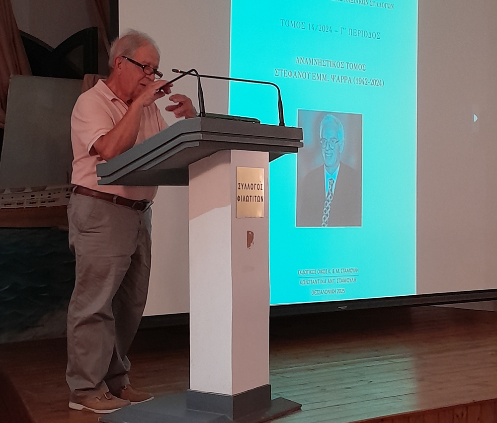 Εκ μέρους της Επιτροπής Εκδόσεως, μίλησε ο κ. Μανόλης Σέργης, Ομότιμος Καθηγητής Λαογραφίας του ΔΠΘ, σημειώνοντας τη σημαντικότητα της έκδοσης της επετηρίδας, τη συνεργασία με το Δ.Σ., τους συγγραφείς και τον εκδοτικό οίκο, ώστε το τελικό αποτέλεσμα, ο (κάθε) τόμος να διακρίνεται τόσο για την ύλη του όσο και για την καλαισθησία του.