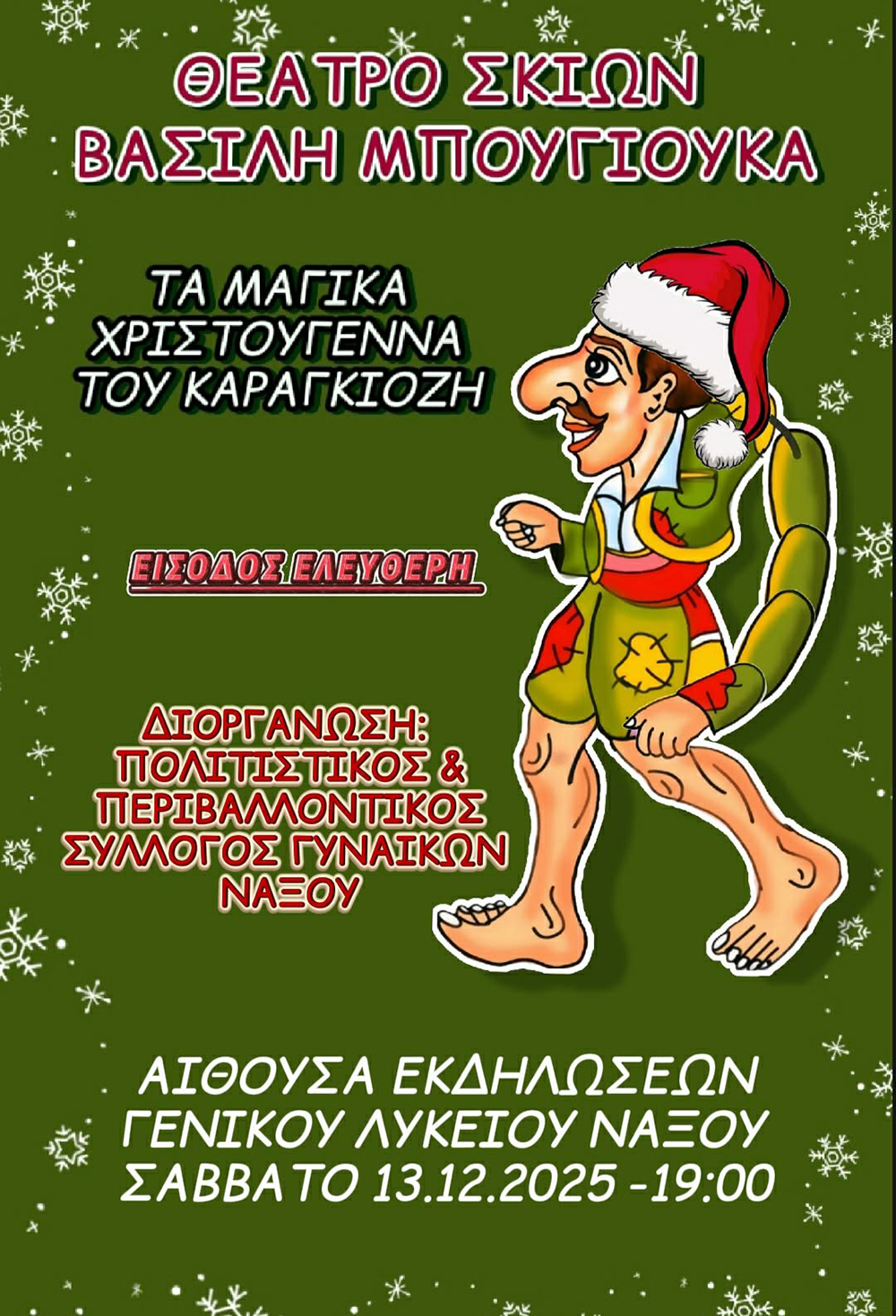 Νάξος: Γιορτή για παιδία με μουσική, κεράσματα, Καραγκιόζη και πολλά ακόμη, το Σάββατο 13 Δεκεμβρίου