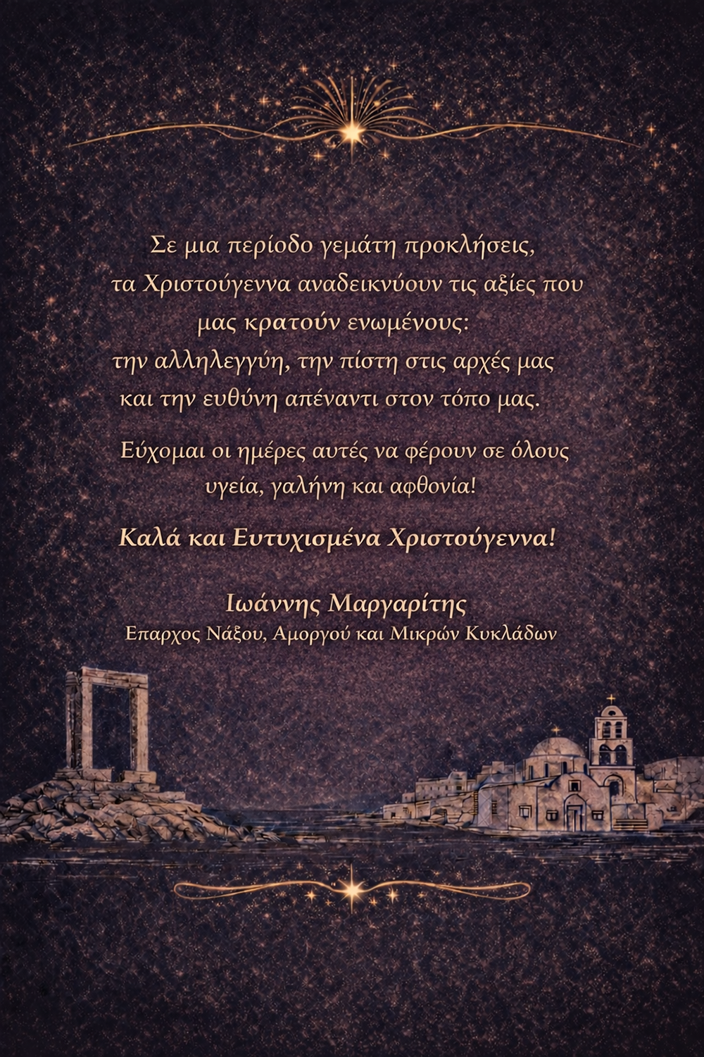 Σε μια περίοδο γεμάτη προκλήσεις, τα Χριστούγεννα αναδεικνύουν τις αξίες που μας κρατούν ενωμένους: την αλληλεγγύη, την πίστη στις αρχές μας και την ευθύνη απέναντι στον τόπο μας.