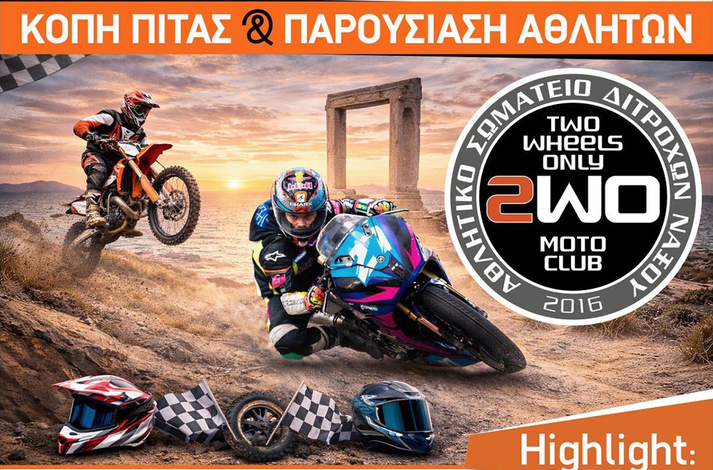 To Αθλητικό Σωματείο Δίτροχων Νάξου σας προσκαλεί στην κοπή της πίτας και στην παρουσία αθλητών το Σάββατο 21 Μαρτίου 2026 στις 8μμ στο “The Ocean Club” .