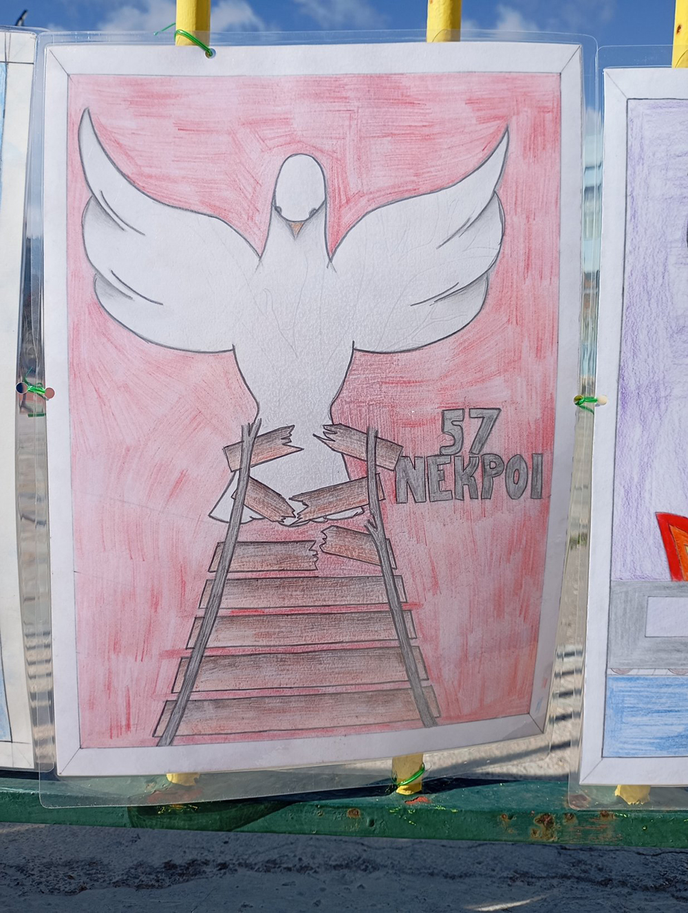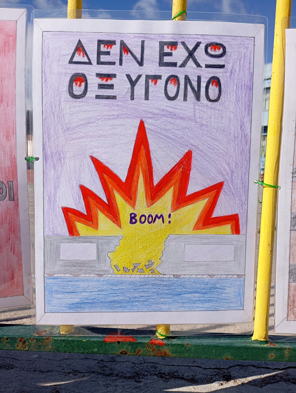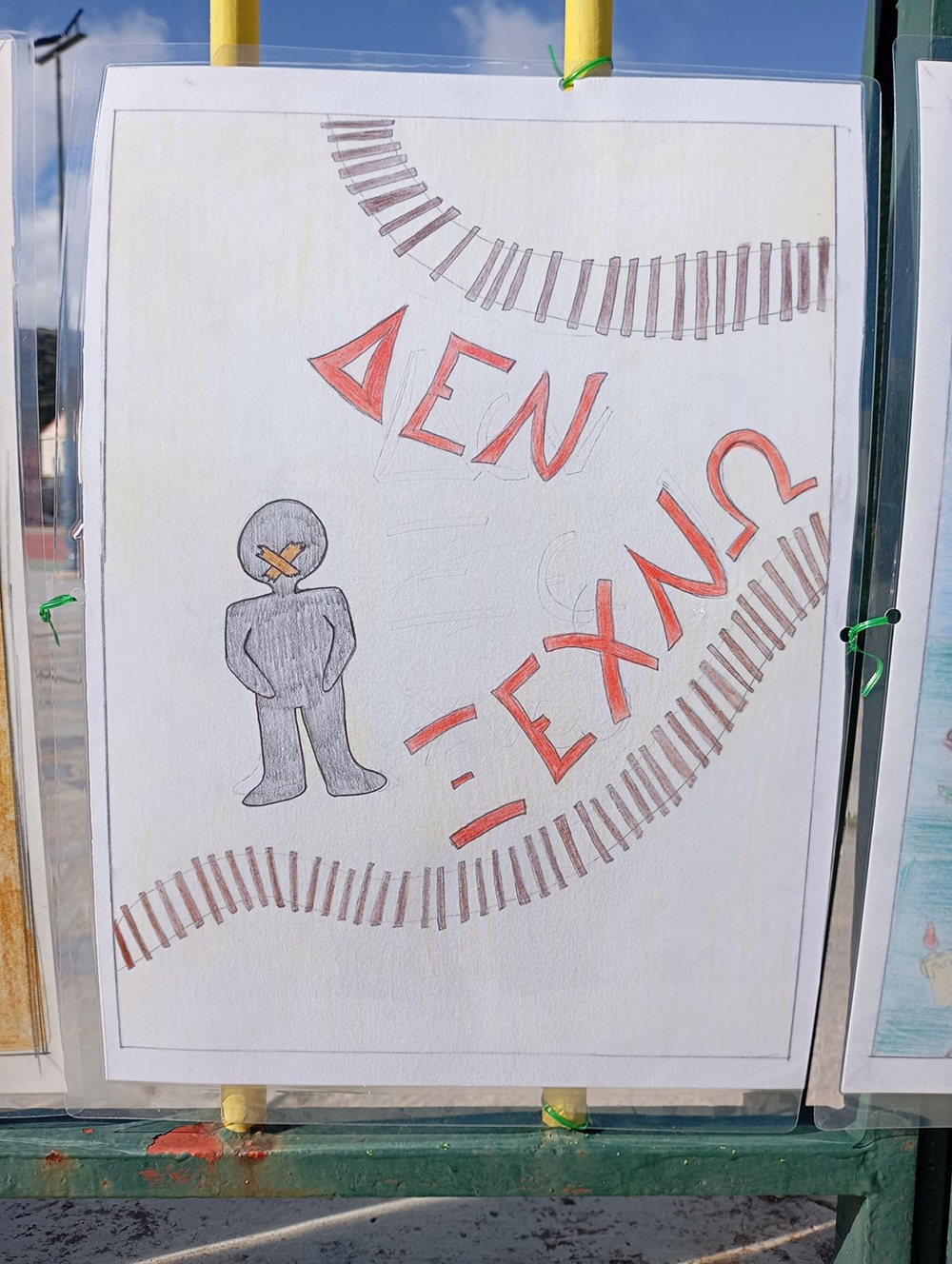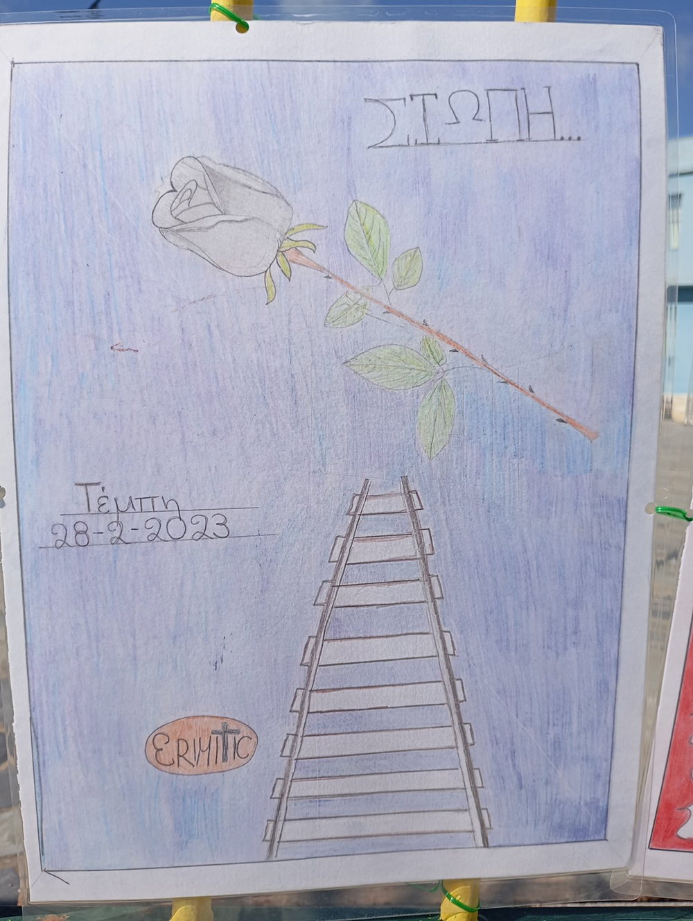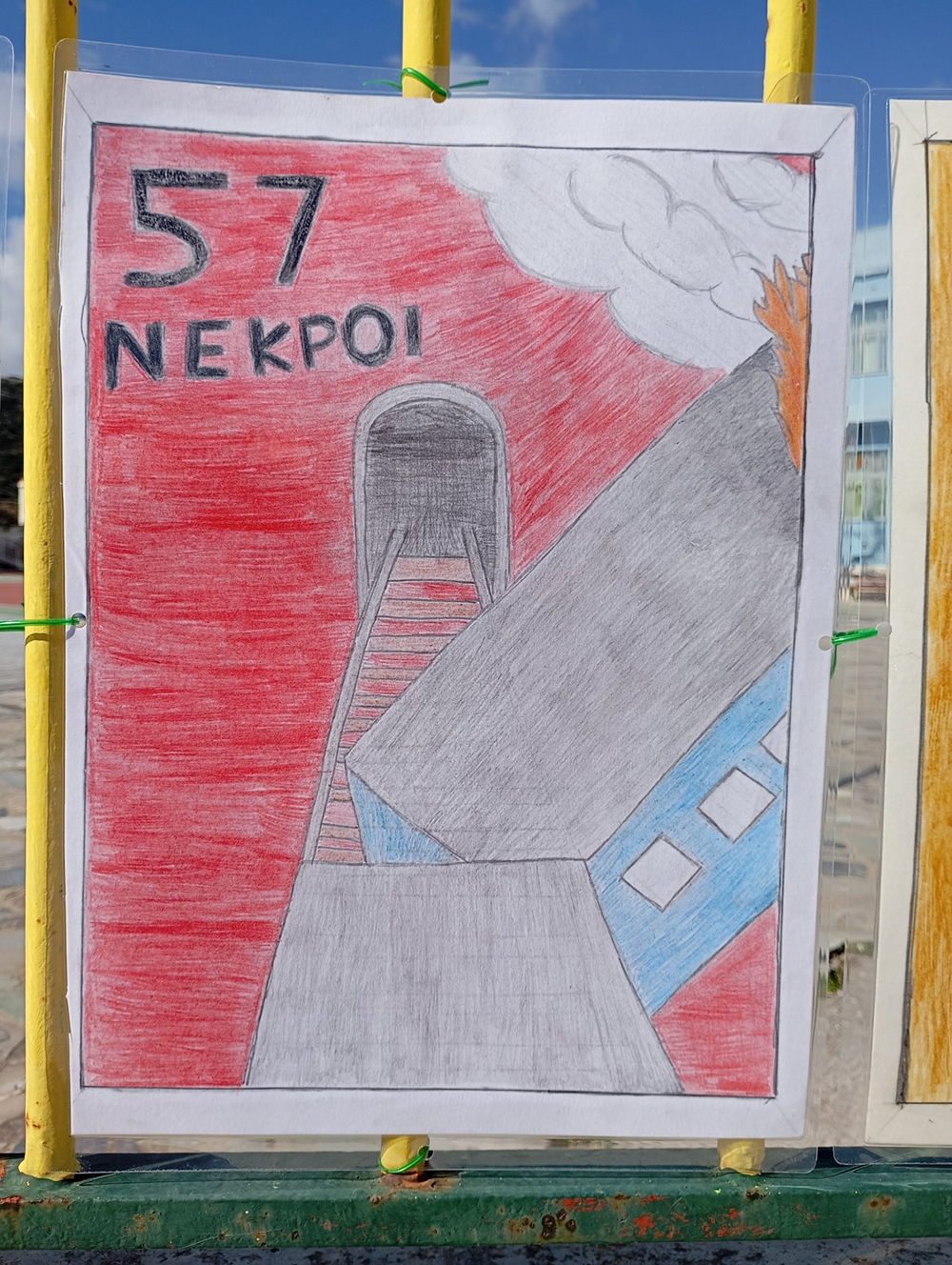 Από τις 28 Φεβρουαρίου, οι μαθητές του σχολείου δημιούργησαν και τοποθέτησαν τις ζωγραφιές και τις αφίσες τους στα κάγκελα του σχολείου, μετατρέποντας την είσοδο σε μια υπαίθρια μαθητική έκθεση. Μέσα από τα έργα τους, τα παιδιά εκφράζουν σκέψεις, συναισθήματα και μηνύματα που σχετίζονται με τη μνήμη, την αξία της ανθρώπινης ζωής, την ευθύνη και την ανάγκη για έναν ασφαλέστερο κόσμο.