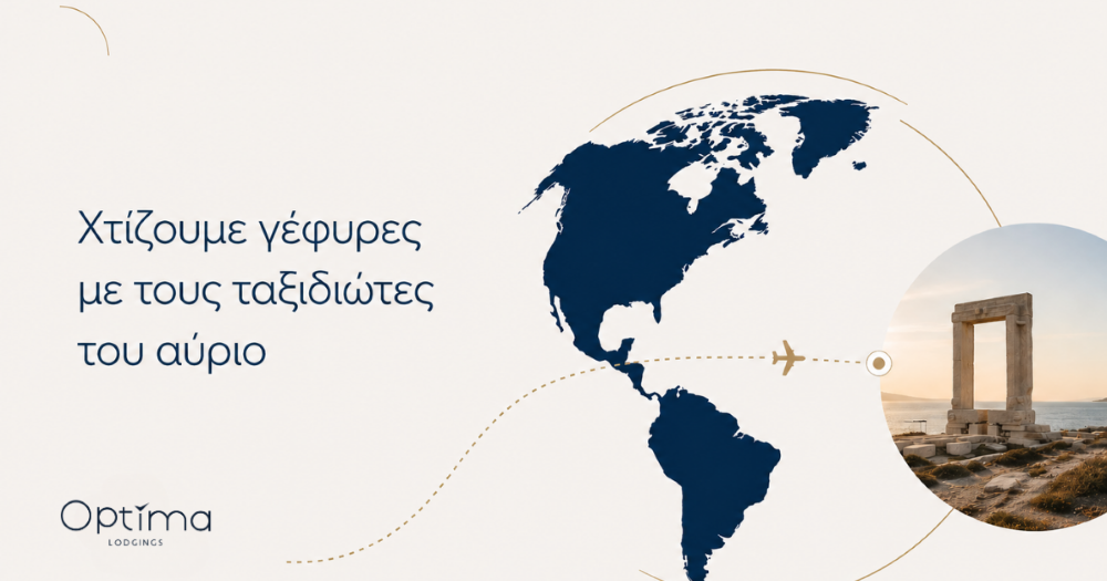 Στην Optima Lodgings, μετατρέπουμε τη διεθνή δικτύωση σε απτό πλεονέκτημα για τους συνεργάτες μας, αναδεικνύοντας τα καταλύματά τους και τη Νάξο ως κορυφαίες επιλογές για τους high-end ταξιδιώτες του κόσμου.