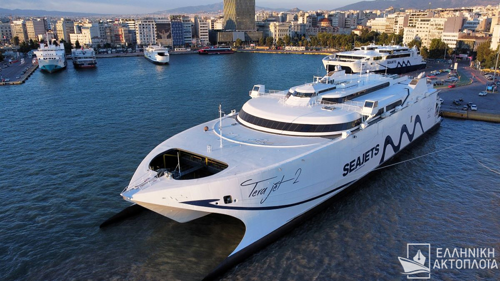 Στο κεντρικό λιμάνι του Πειραιά βρίσκεται δεμένο από χθες το μεσημέρι 9/7, το TERA JET 2, προκειμένου να ετοιμαστεί για την πρώτο του εμπορικό δρομολόγιο στην Ελλάδα.