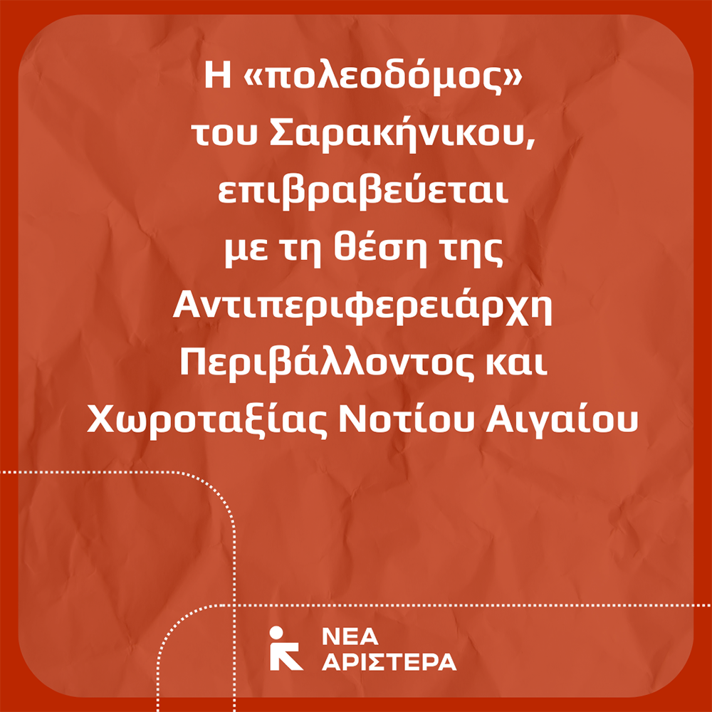 Νέα Αριστερά Κυκλάδων: «Η “πολεοδόμος” του Σαρακήνικου, επιβραβεύεται με τη θέση της Αντιπεριφερειάρχη Περιβάλλοντος και Χωροταξίας Νοτίου Αιγαίου»