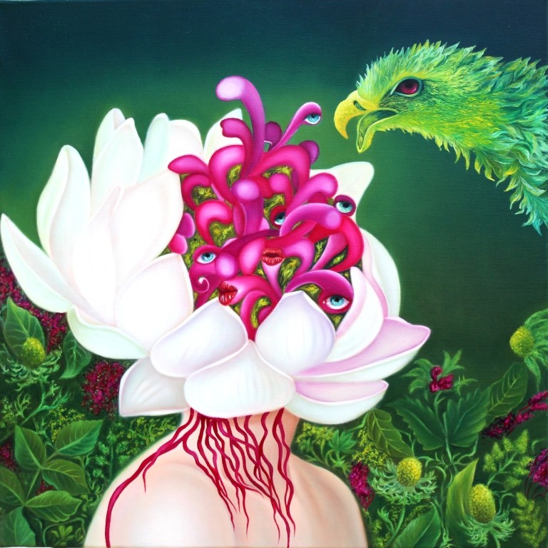 Στον πυρήνα της έκθεσης βρίσκεται η έννοια της μεταμόρφωσης. Κεφάλια που γίνονται μάτια, βλέμματα που ανθίζουν, σώματα που ενώνoνται με κύματα, κοράλλια, φεγγάρια. Οι μορφές γίνονται φορείς εσωτερικής όρασης και ψυχικής αναζήτησης, διαμορφώνοντας έναν εικαστικό κόσμο όπου η φύση εμφανίζεται ως οργανική συνέχεια του ανθρώπινου όντος. Φυλλώματα, κρανία που ανθίζουν, νούφαρα με χείλη – όλα συνυπάρχουν με έναν τρόπο ονειρικό αλλά και βαθιά συμβολικό. Ιστορικά έργα ζωντανεύουν για να συνομιλήσουν με τον χρόνο και να ερμηνευτούν στο σήμερα. Τα μάτια, φορείς αισθήσεων, γίνονται πύλες εσωτερικής ενόρασης, όπου τα όνειρα γεννιούνται, διαμορφώνονται και αντικατοπτρίζονται. Η φύση εμφανίζεται σαν οργανική συνέχεια του ανθρώπινου όντος, είτε με τη μορφή φυλλωμάτων, κυμάτων, είτε μέσα από ανθισμένα κρανία και νούφαρα με χείλη.