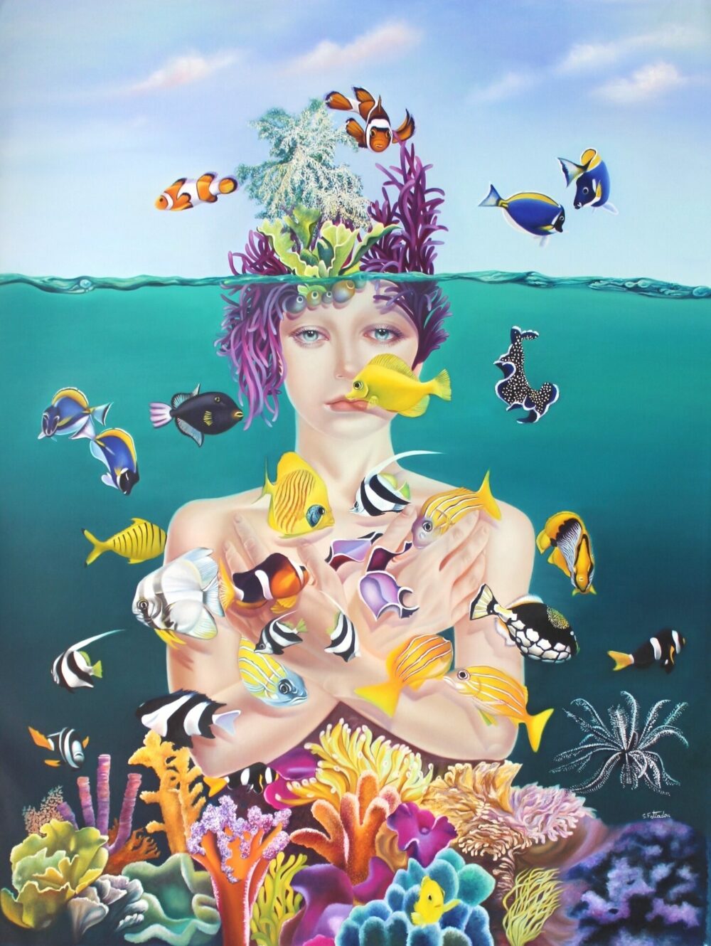 Ένα σύμπαν όπου το ανθρώπινο σώμα και η φύση συνυπάρχουν σε υπερβατικές, σχεδόν ποιητικές συνθέσεις παρουσιάζει η νέα ατομική έκθεση της Σοφίας Φωτιάδου που άνοιξε χθες τις πόρτες της στην Πινακοθήκη Κυκλάδων με τίτλο «Εκεί που γεννιούνται τα όνειρα».