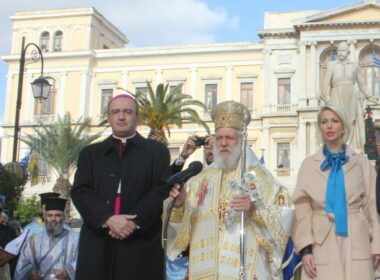 Με τους στίχους του Νίκου Γκάτσου «Άγιε Νικόλα, παρακαλώ σε, σε όλα τα πέλαγα λουλούδια στρώσε» ο Μητροπολίτης Σύρου