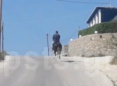 Πάρος: Ξένοιαστος καβαλάρης καλπάζει με το άλογό του σε έρημο αυτοκινητόδρομο του νησιού