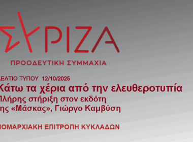 Πλήρης στήριξη του ΣΥΡΙΖΑ Κυκλάδων στον Γιώργο Καμβύση – «Κάτω τα χέρια από την ελευθεροτυπία»