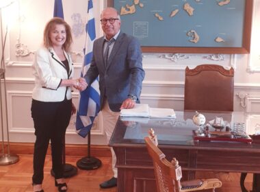 Την νεοεκλεγείσα δήμαρχο Φολεγάνδρου Ευθαλία Παπαδοπούλου υποδέχθηκε στο γραφείο του ο αντιπεριφερειάρχης Κυκλάδων Γιώργος Λεονταρίτης, ο οποίος δέχθηκε τα