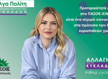 Δήλωση για τα αποτελέσματα των εκλογών, έκανε η υποψήφια βουλευτής Κυκλάδων με το ΠΑΣΟΚ – ΚΙΝΑΛ, Όλγα Πολίτη. «Σας