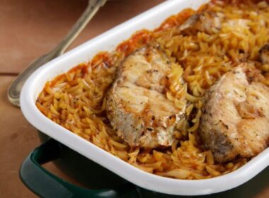 Φέτες ψαριού στον φούρνο με μανέστρα