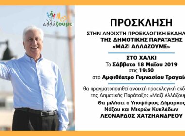 Πρόσκληση στην κεντρική, ανοιχτή προεκλογική εκδήλωση της Δημοτικής Παράταξης «Μαζί Αλλάζουμε» στη Χώρα Νάξου