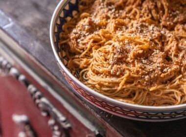 Νηστίσιμη μακαρονάδα με σάλτσα από ταχίνι και τριμμένους ξηρούς καρπούς