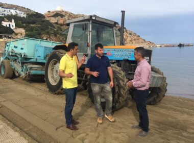 Με μισθωμένο – από τον δήμο Σύρου-Ερμούπολης – ειδικό μηχάνημα ξεκίνησε χθες ο καθαρισμός της ακτής στην παραλία του Γαλησσά,