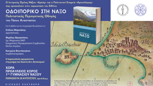 Ο Ιστορικός Όμιλος Νάξου «Αρσός» και η πολιτιστική Εταιρεία «Αρχιπέλαγος» σας προσκαλούν στην παρουσίαση του βιβλίου «Οδοιπορικό στη Νάξο –