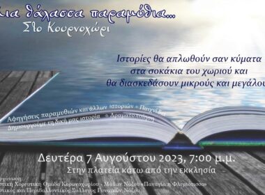 Αφηγήσεις παραμυθιών και άλλων ιστοριών, παιχνίδια, δημιουργία ιστοριών και δραματοποίηση περιλαμβάνει η εκδήλωση που συνδιοργανώνουν στο Κουρνοχώρι η Πολιτιστική