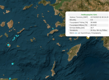 Ισχυρή σεισμική δόνηση 5,8 Ρίχτερ ανοιχτά της Ρόδου