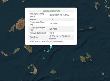 Σεισμός 3,9 Ρίχτερ ανοιχτά της Αμοργού