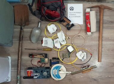 Τρεις ημεδαποί, ηλικίας 37, 45 και 72 ετών, συνελήφθησαν από αστυνομικούς του Α.Τ. Καλυμνίων, κατηγορούμενοι για παράνομη ανίχνευση-ανασκαφή, κατοχή