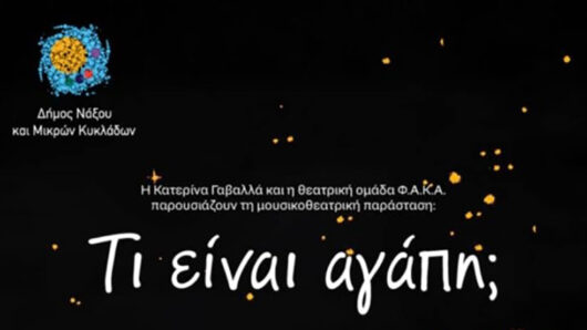 Ο Δήμος Νάξου και Μικρών Κυκλάδων φιλοξενεί τη θεατρική παράσταση «Τι είναι Αγάπη;» της Κατερίνας Γαβαλά και της θεατρικής ομάδας