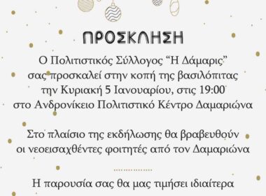Κοπή Βασιλόπιτας του Πολιτιστικού Συλλόγου “Η Δάμαρις”