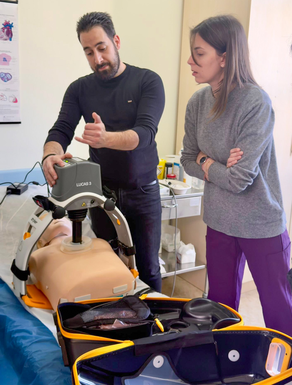 Πρόκειται για συσκευή LUCAS 3 αυτόματων θωρακικών συμπιέσεων, η οποία χρησιμοποιείται σε περιπτώσεις καρδιακής ανακοπής και θεωρείται ιδιαίτερα σημαντική για την παροχή άμεσης και αποτελεσματικής υποστήριξης στους ασθενείς.